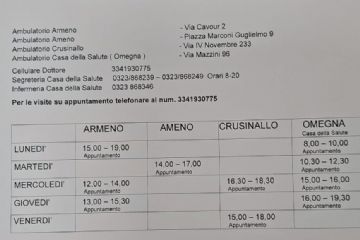 Si allegano gli orari del medico di base, Dott.essa Lara Trecate, con indicazione di tutti gli ambulatori nei quali è presente e dei rispettivi orari. Ad Armeno l'ambulatorio è presso la sede del...
