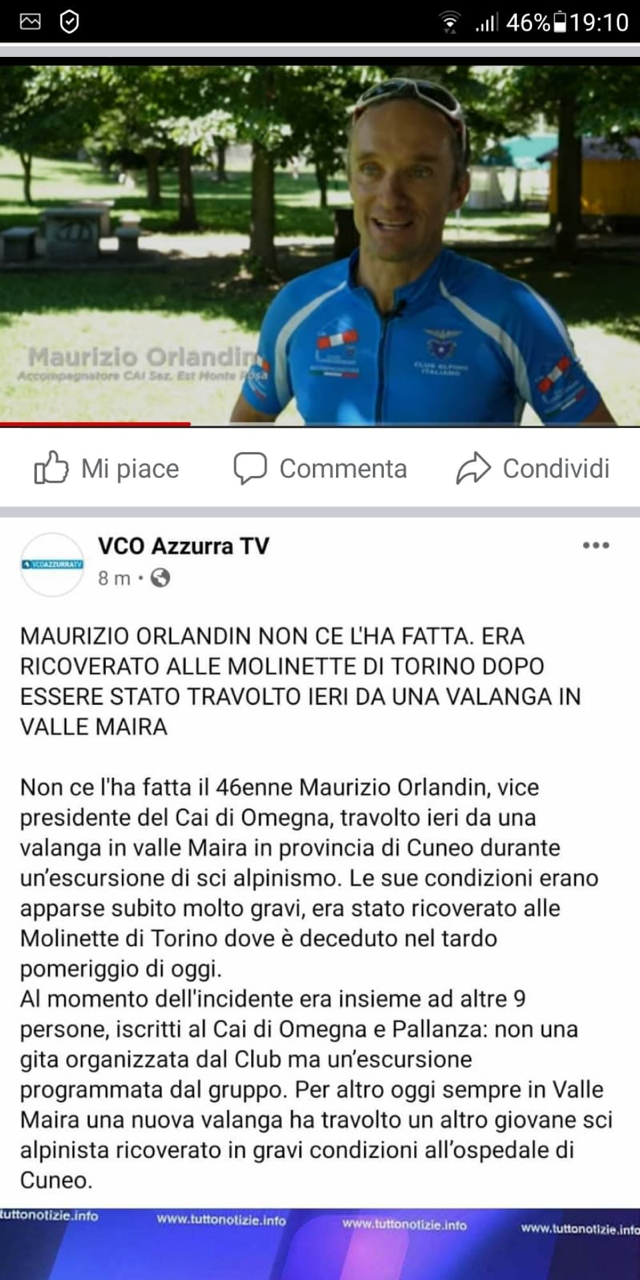 Oggi il nostro Comune è in lutto per la perdita dell'autista dello scuolabus, per la dipartita di un marito e di un padre, per la morte di un amico conosciuto da molti. Grazie per essere stato in mezzo a noi, grazie per le puntuali ed affidabili prestazioni date in quindici anni di lavoro dipendente, grazie per essere stato sempre propositivo, grazie per aver guidato e supportato i nostri ragazzi nelle varie uscite, grazie per aver messo a disposizione della comunità le ottime conoscenze del territorio, in forma sempre gratuita e competente. Maurizio sarai nei nostri cuori, ora colmi di tanto dolore!