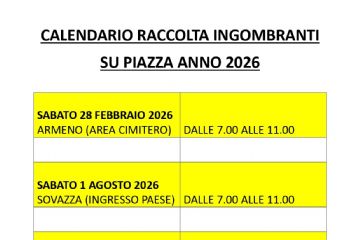 Si pubblica il calendario 2026 per la raccolta degli ingombranti su piazza.