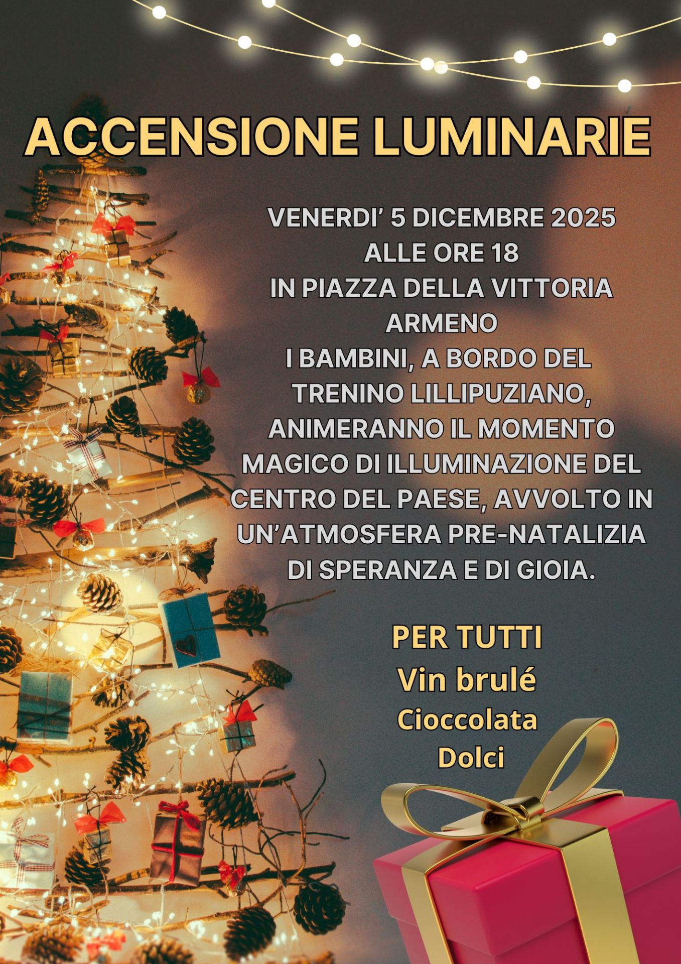 In allegato la locandina dell'evento di accensione delle luminarie nel nostro paese.
