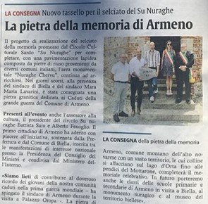Ecco l'articolo informativo sull'avvenuta consegna della pietra con il contributo di vittime offerte dal Comune in seguito al Primo conflitto Mondiale.