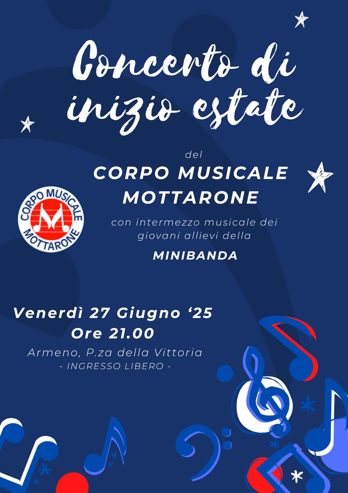 Venerdì 29 luglio 2025, ore 21, in Piazza della Vittoria Armeno, grande concerto del Corpo Musicale del Mottarone e della minibanda.