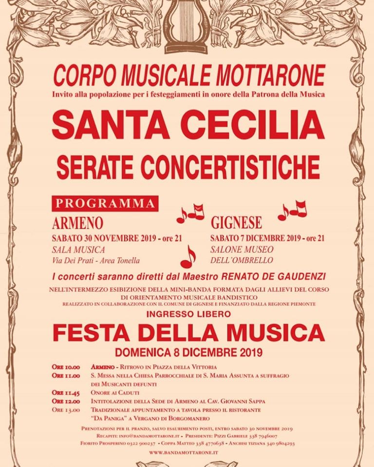 Ritorna il consueto appuntamento con la Banda Musicale del Mottarone per il Concerto di Santa Cecilia e la Festa della Musica!