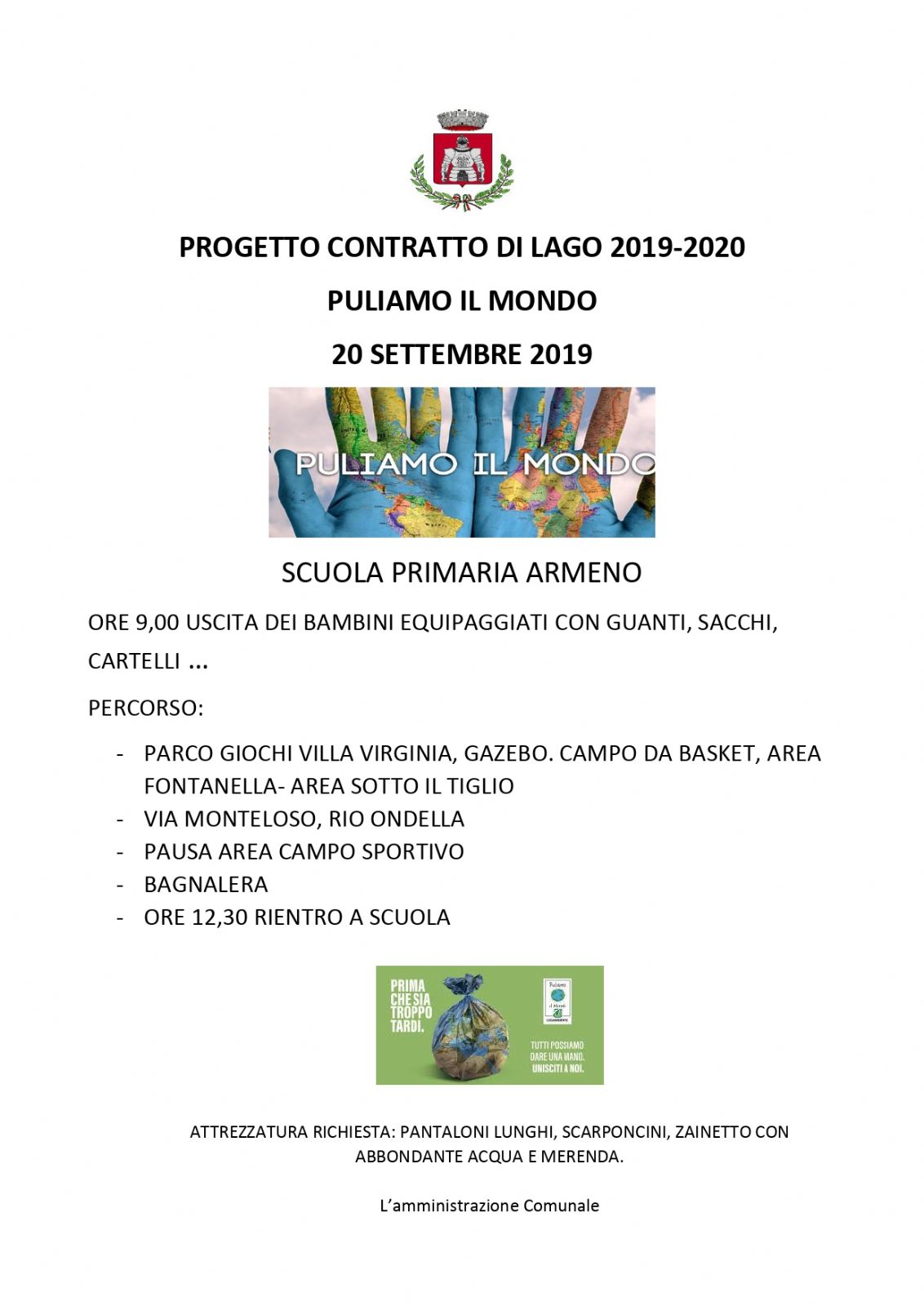 ORE 9,00 USCITA DEI BAMBINI EQUIPAGGIATI CON GUANTI, SACCHI, CARTELLI …