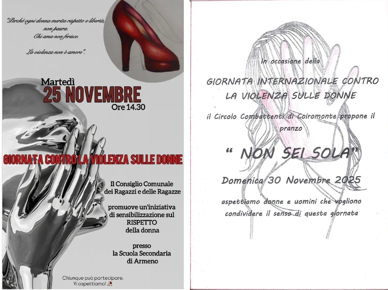 L'Associazione Soroptimist Alto Novarese esporrà un grande striscione che richiamerà al problema femminile, si illuminerà di luce arancione il portico del Municipio dal 25 novembre al 10 dicembre 2025 (Giornata Internazionale dei diritti umani), si aderirà alle proposte del CCR della Secondaria e a quelle della Frazione Coiromonte, si accoglieranno le attività dell'Associazione Scrittori e Sapori per dire "Basta!" alla violenza sulle donne.