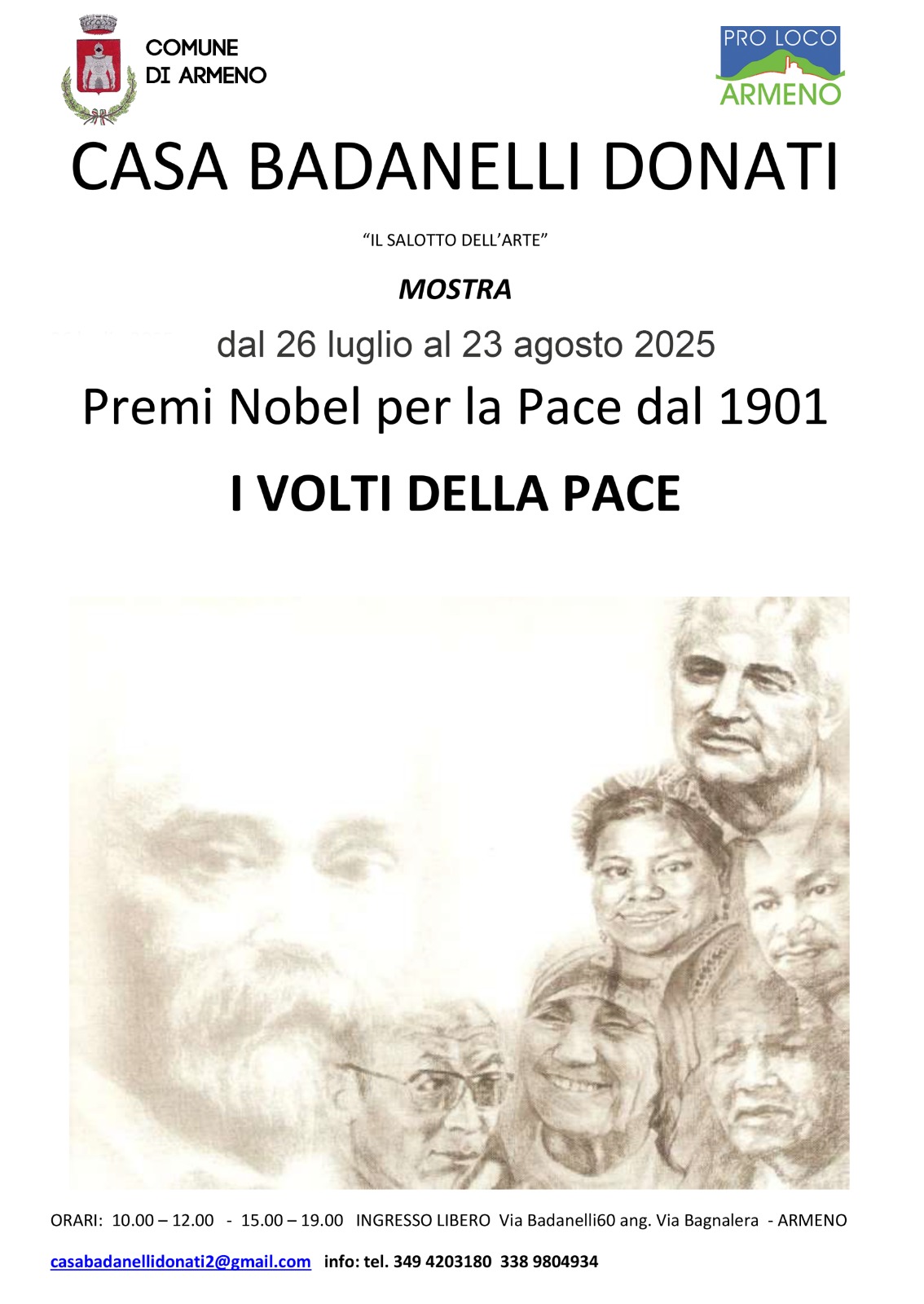 A casa Badanelli Donati, grazie ad Angela e Gianni, verrà aperta una mostra sui "Premi Nobel per la pace". Saranno esposte 94 copie di ritratti a china e carboncino realizzati dall'artista ungherese Monika Hafner.