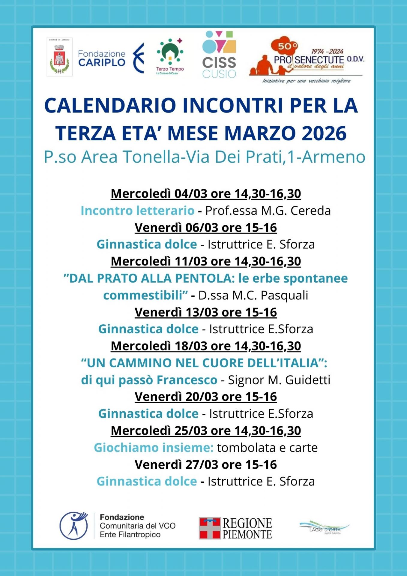 Come consuetudine si pubblica il volantino degli incontri nel mese di marzo, appuntamenti sempre nuovi, curiosi ed attuali, con esperti qualificati.